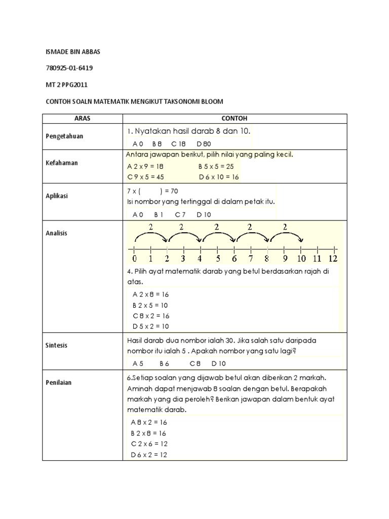 Soalan Matematik Mengikut Aras Taksonomi Bloom Pdf